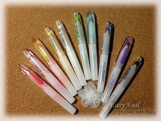 用這種筆彩繪因為線條粗細一致,圖案會比較不精緻,但用來畫蕾絲或是對手殘人來說會有一些幫助,大家就參考參考囉^^