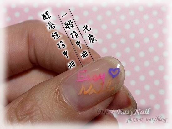 沒錯! 中間擦上一般指甲油的部份顏色被吃掉了